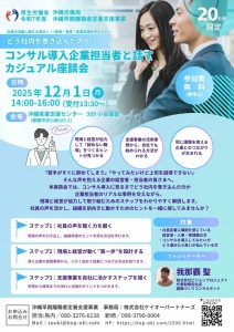沖縄労働局では、沖縄県の雇用の改善と、若年者を中心とした早期離職防止、職場定着の促進を図ることを目…